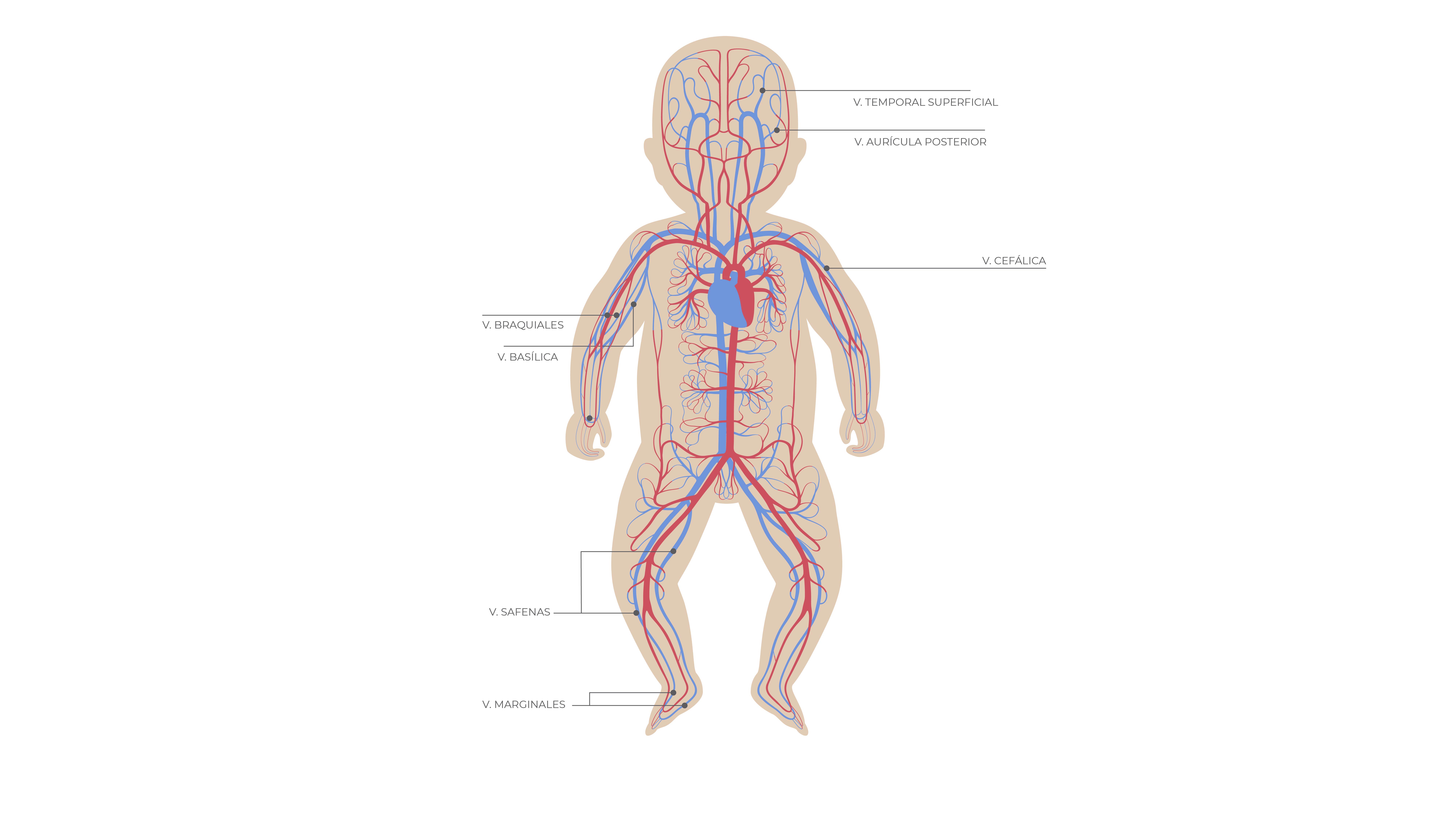 - En miembros superiores: venas Basílica, Cefálica o Braquiales