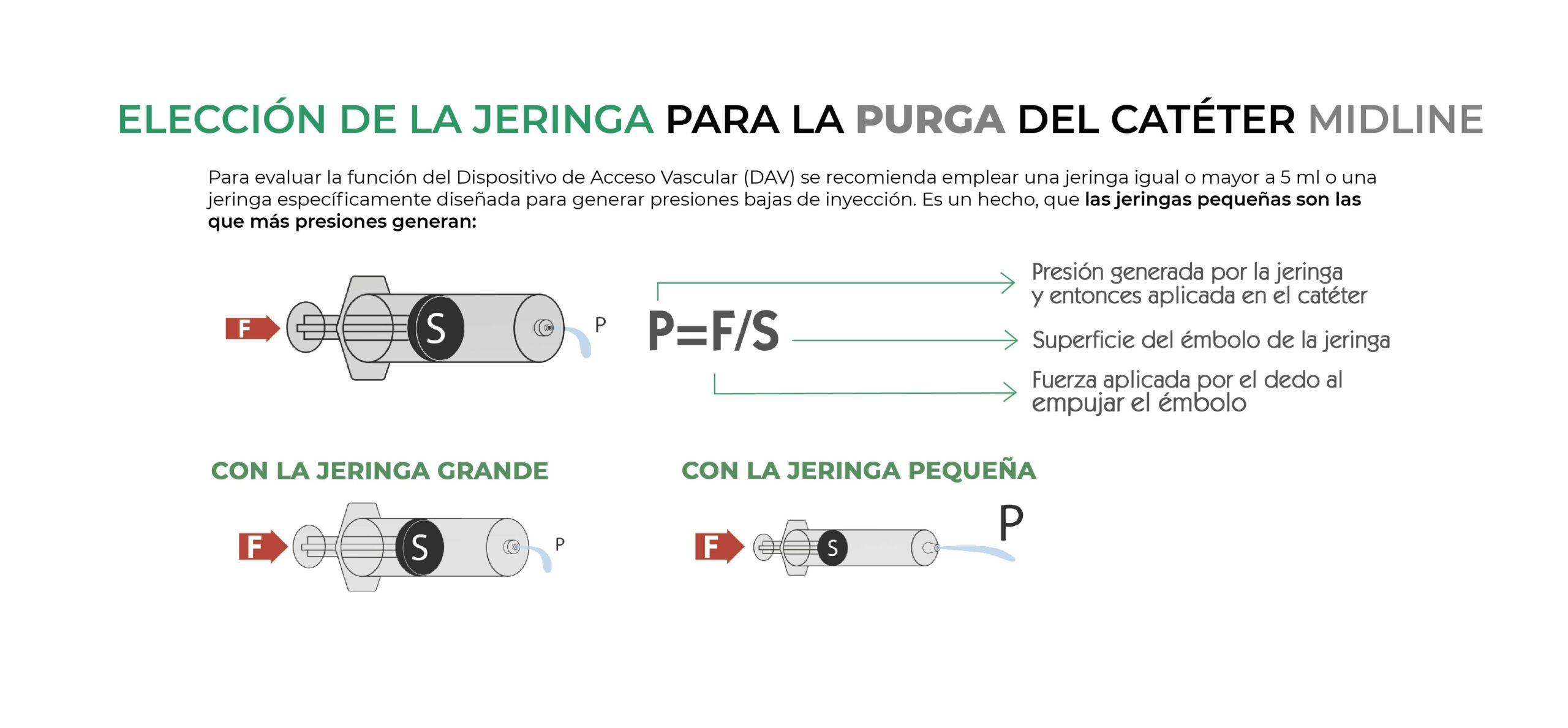 A finde de realizar adecuadamente el mantenimiento, se recomienda emplear jeringas de, al menos, 5 ml. ya que ejercen menos presión sobre la línea. En cualquier caso, para evitar complicaciones, siempre se debería infundir mediante la técnica de flujo turbulento push-stop-push.