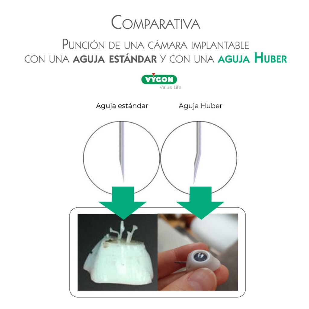 Cualquier reservorio debe puncionarse con aguja no carotante (o non-coring), también conocida como aguja de Huber.