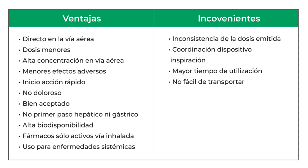 Por este motivo, las guías clínicas recomiendan esta vía como la modalidad terapéutica fundamental para numerosas enfermedades respiratorias como el asma y la enfermedad pulmonar obstructiva crónica agudizada (AEPOC).