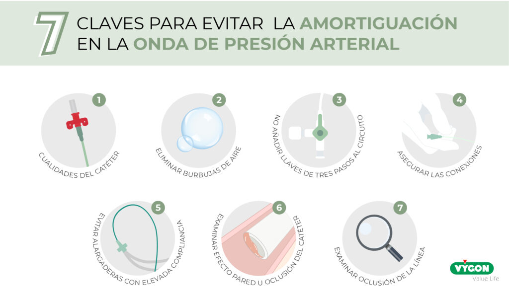 A parte de tener en cuenta las características del catéter, podemos llevar a cabo otra serie de recomendaciones que nos permitan evitar la amortiguación y, de esta forma, disponer de una onda de presión arterial de calidad: