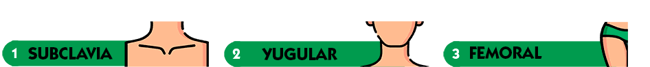 De forma general la escala de elección será: subclavia, yugular y, por último, femoral.