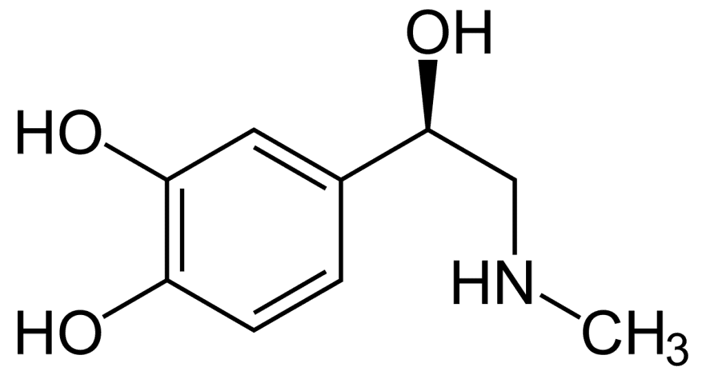 La adrenalina o epinefrina es una catecolamina endógena secretada por la médula adrenal.