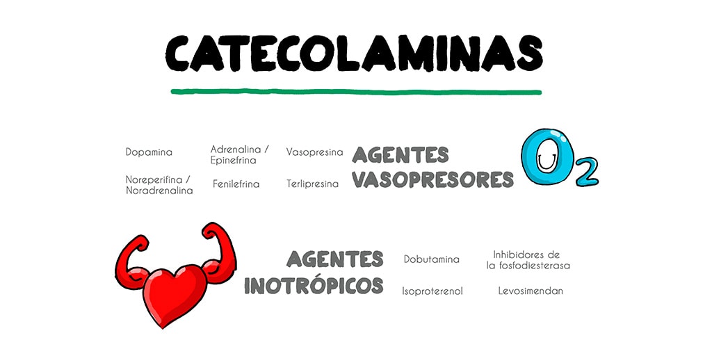 En este articulo hemos realizado un recorrido alrededor de las diferentes catecolaminas que se suelen administrar con el fin de aumentar la presión arterial en el caso de los agentes vasopresores y mejorar la función miocárdica en el caso de los agentes inotrópicos. Con el fin de esclarecer los usos de las diferentes drogas vasoactivas disponibles.