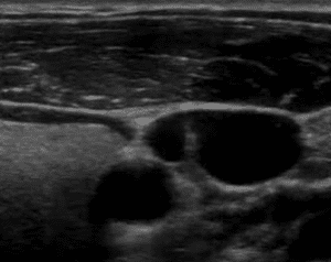Además, el ecógrafo permite medir el calibre de las venas, lo que da la ventaja de elegir el diámetro adecuado del catéter respecto a la vena elegida. Cualquier catéter tiene que ocupar solo 1/3 de la luz de la vena.