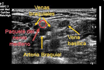 Esta técnica ecoguiada permite canalizar venas profundas del brazo que son en orden de preferencia por recorrido y calibre: la basílica, las braquiales y la cefálica.