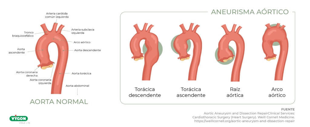 La ubicación más común de un aneurisma es la aorta, responsable de transportar sangre oxigenada desde el corazón al resto del cuerpo. 2