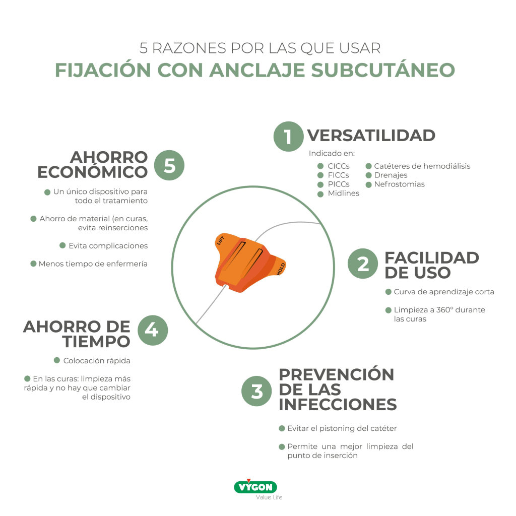 - Fijación 100% segura: Al estar anclado debajo de la piel, el catéter no se mueve ni se desplaza, incluso durante las curas.