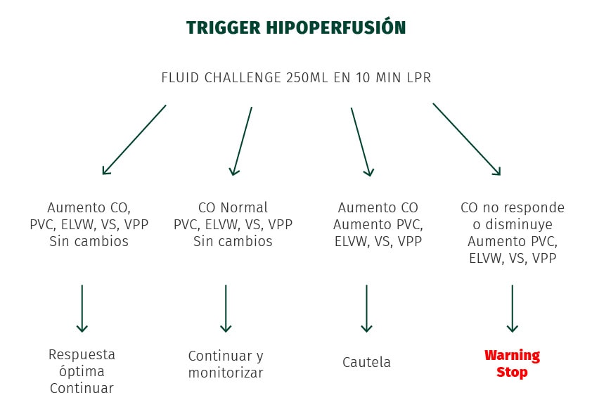 A la hora de detectar el trigger de la hipoperfusión, debemos fijarnos en los siguientes parámetros: CO, ELVW, VS, RCT y VPP.