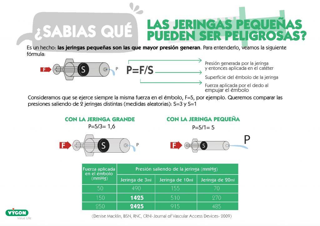 Es imprescindible usar, sin importar el diámetro del catéter, jeringas de 10ml ya que evitan la sobrepresión que podría provocar la rotura del mismo.