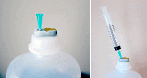 La botella (o bolsa) de suero salino permite cargar jeringas que pueden utilizarse para varios fines: los más extendidos son: