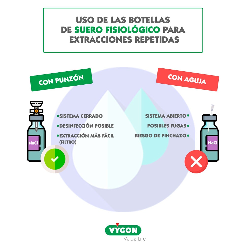 Para cualquier tipo de cuidado que requiere suero fisiológico estéril es muy importante usar dispositivos que permiten un acceso adecuado al continente. En el caso particular del cateterismo venoso y con el objetivo de prevenir la bacteriemia relacionada con el catéter, se debe controlar que no se produzcan infecciones. Para ello se debe adoptar un protocolo que guíe la práctica en el manejo de las extracciones de soluciones de lavado y sellado, de las infusiones, así como el cambio de las líneas de infusión y el cuidado de los puntos de salida del catéter.