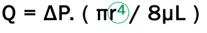 Esta ecuación determina que un flujo constante (Q) en un catéter está directamente relacionado con el gradiente de presión a lo largo del catéter (AP). Y a la cuarta potencia del radio interno del catéter (r⁴). Inversamente relacionado con la longitud del catéter (L) y la viscosidad del fluido (µ).