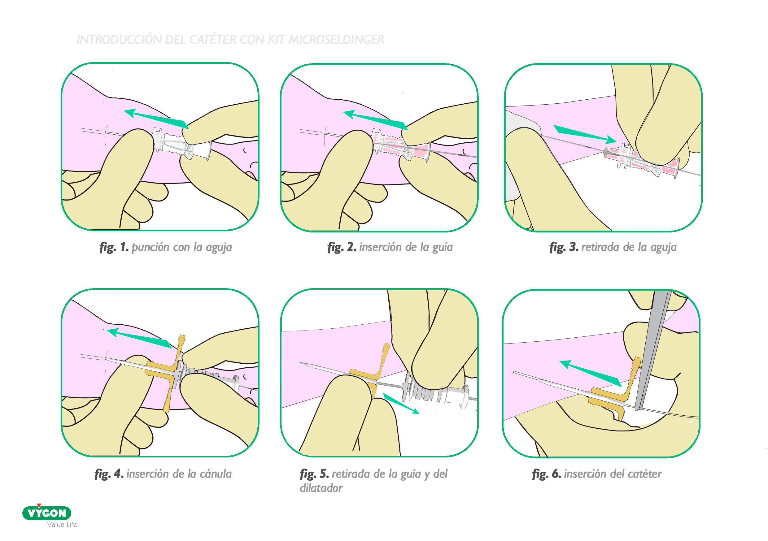 Se trata de un kit de introducción para la inserción de catéter de 1Fr y 2Fr a través de la técnica Seldinger modificada o Microseldinger, formado por: