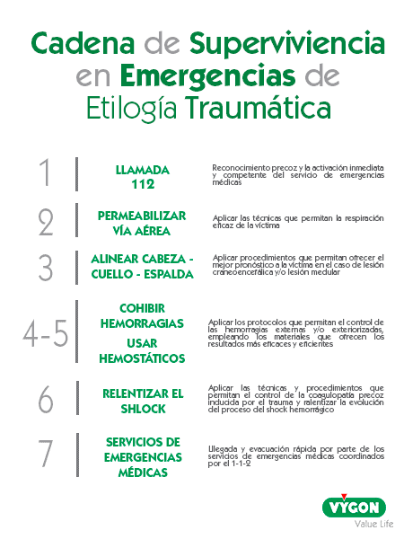 La mortalidad y la morbilidad provocadas por los traumatismos pueden reducirse si se realizaran correctamente por los testigos cualificados, una serie de acciones secuenciadas que configuran la denominada Cadena de Supervivencia en Emergencias de Etiología Traumática.