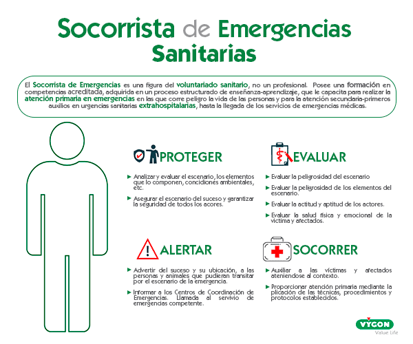El Socorrista de Emergencias es una figura del voluntariado sanitario, es decir no es un profesional. Posee una formación en competencias acreditada, adquirida en un proceso estructurado de enseñanza-aprendizaje, que le capacita para realizar la atención primaria en emergencias en las que corre peligro la vida de las personas y para la atención secundaria-primeros auxilios en urgencias sanitarias extrahospitalarias, que suceden en los entornos cotidianos, hasta la llegada de los servicios de emergencias médicas.