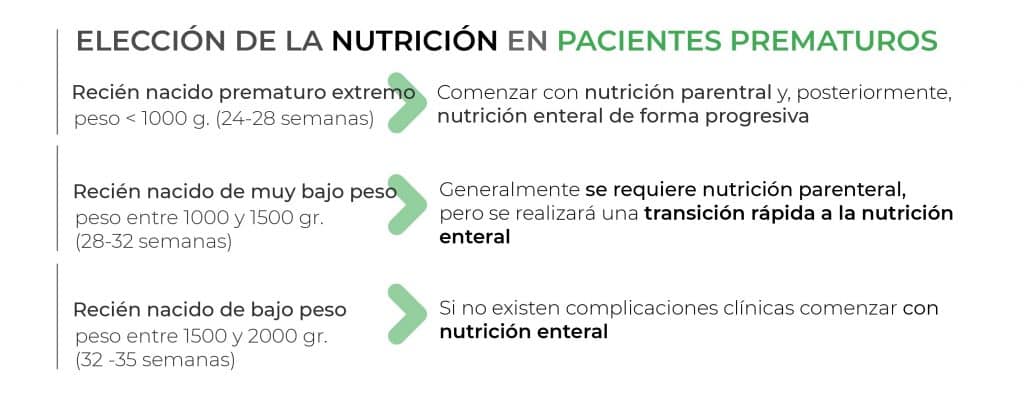 Para poder cubrir estas necesidades especiales, además de el empleo de fórmulas de enriquecimiento, existen alternativas como la instauración de sistemas de nutrición enteral o nutrición parenteral.