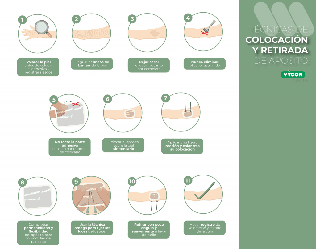 - Utilización de apósitos transparentes semipermeables: apósitos permiten una mejor visualización del punto de inserción y reducen la necesidad de cambios frecuentes.