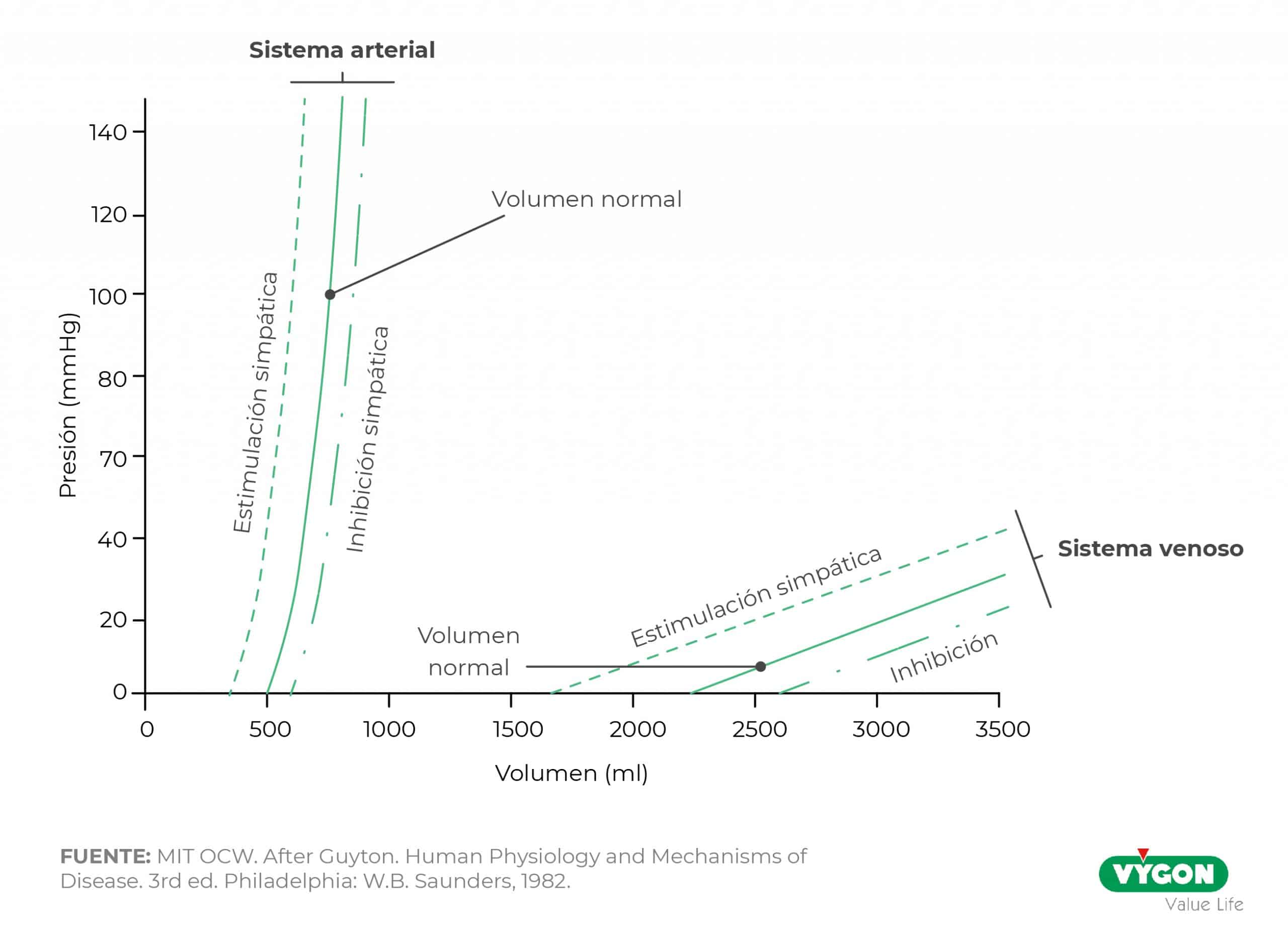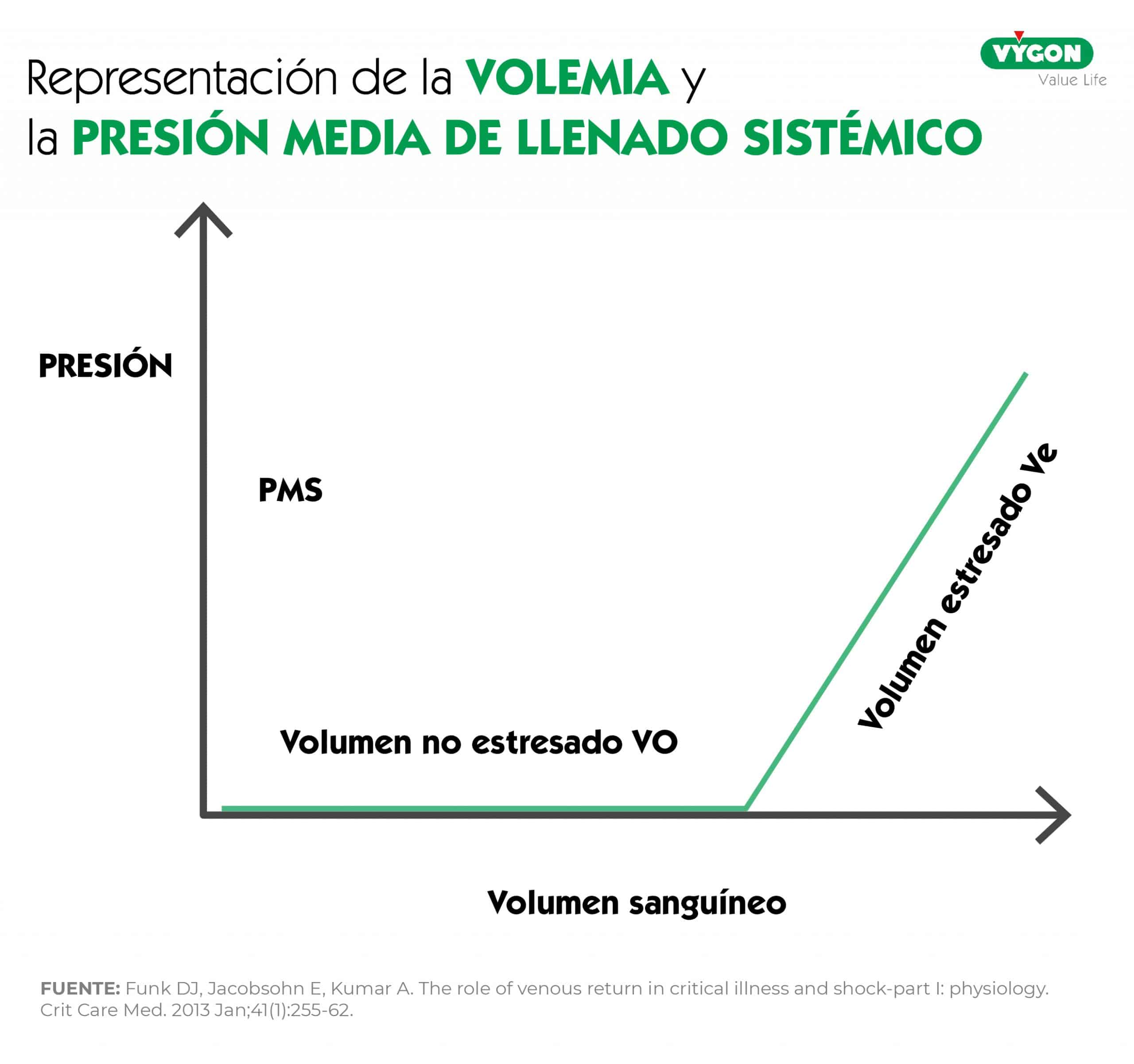 Por su parte, el volumen no estresado (Vo), se trata del volumen que hay de “reserva” especialmente a nivel esplácnico y en otros lechos vasculares. Cuando disminuye el volumen estresado del sistema arteriovenoso principal, le traspasa volumen para mantener la volemia.