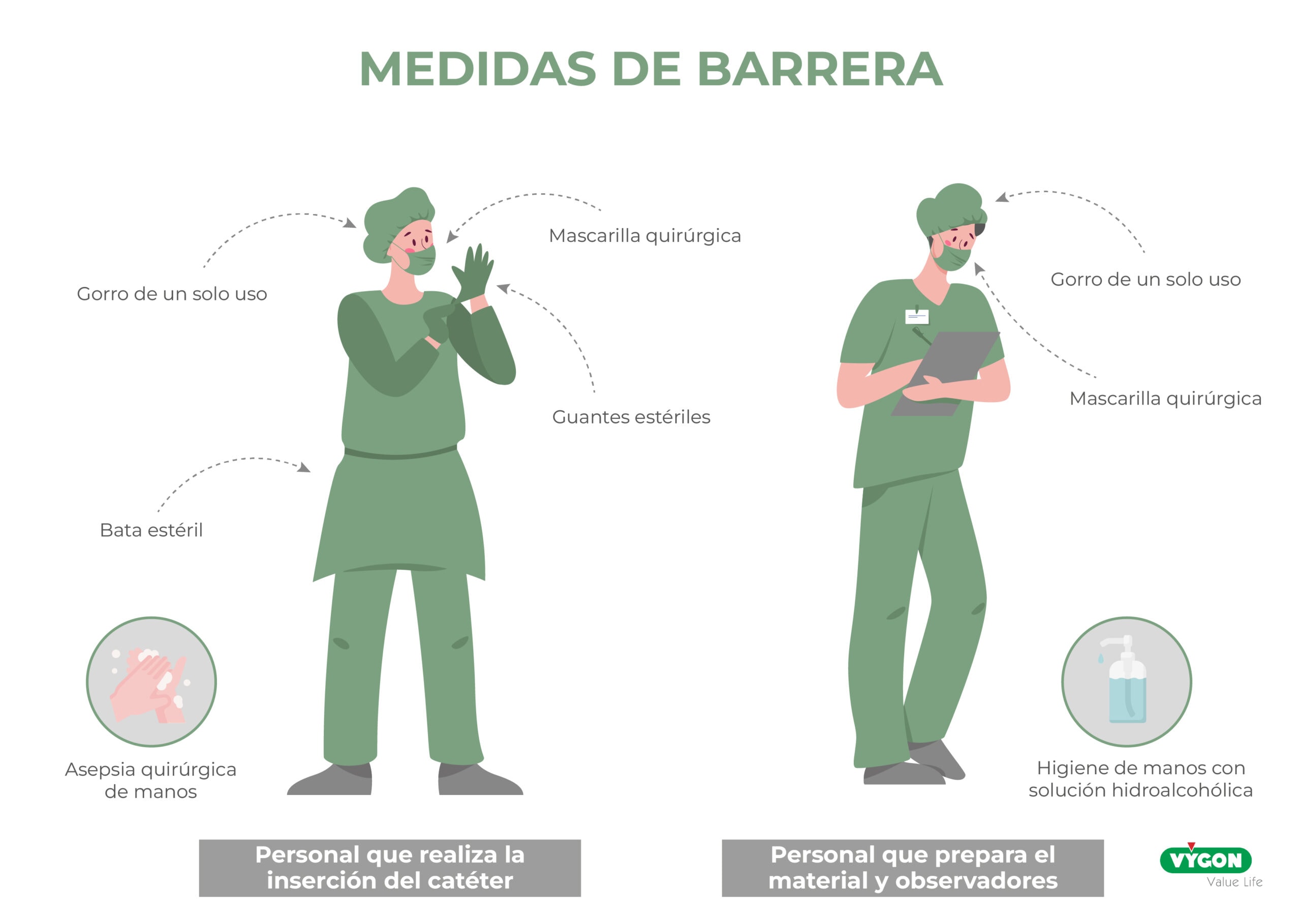 Será fundamental la formación periódica de los profesionales en las estrategias que permitan disminuir la infección asociada a catéter. Se debe garantizar la asepsia durante el proceso, recomendándose las siguientes medidas de barrera.