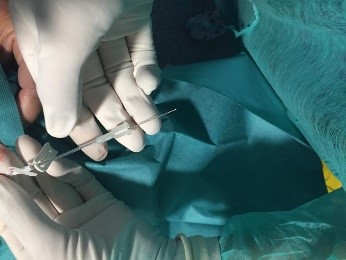- Retirar la aguja y dejar colocada la cánula