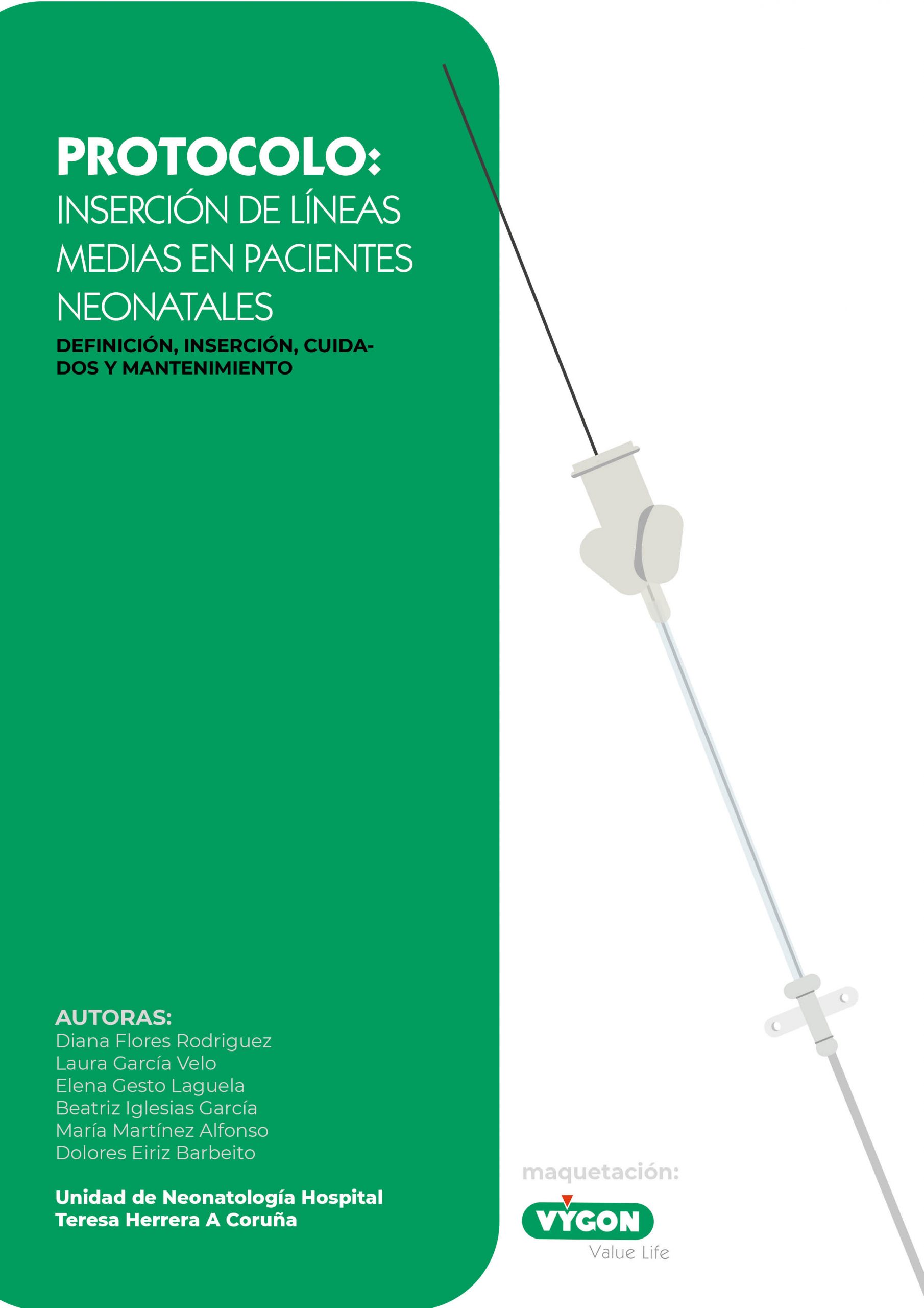- Flores, D., García, L., Gesto, E., Iglesias, B., Martínez, M. and Eiriz, D., 2021. Protocolo: Inserción de líneas medias en pacientes neonatales. [PDF] Unidad de Neonatologías Hospital Teresa Herrera A Coruña. Available at: <https://staging.campusvygon.com/es/wp-content/uploads/sites/2/2020/09/Protocolo-Lineas-medias-v2_compressed.pdf> [Acceso 5 Julio 2020].