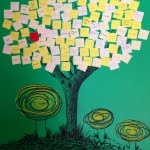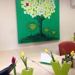 Paseando por el edificio podemos encontrarnos con los 5 árboles de los 5 valores Vygon. Cada árbol representa uno de los valores de la organización (compromiso, orientación a la mejora, mentalidad abierta, personas e integridad) y están compuestos por post-its donde cada empleado ha escrito lo que ese valor significa para él o ella. A la entrada del almacén nos topamos con un mural, de 8 metros de altura, con el árbol que Fernando Jiménez ha diseñado para nosotros basado en el dibujo de esa niña de 8 años. Pero, además, todos los despachos están pintados con árboles mediterráneos que nos recuerdan dónde estamos y, lo mejor, ¡no necesitan riego!