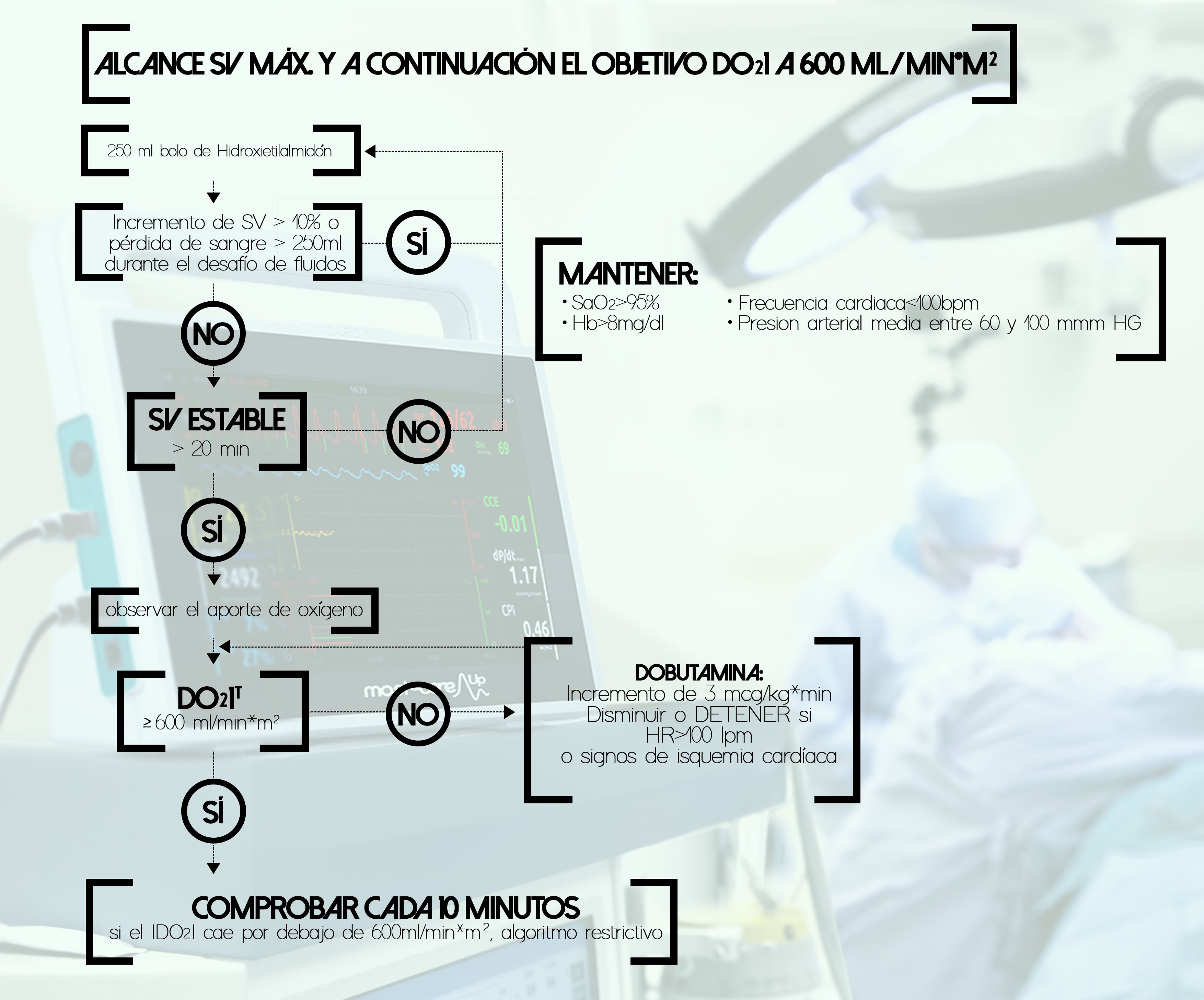 Si el iDO2 es <600 ml/min/m2 se introduce un inótropo (dobutamina o dopexamina) con el fin de alcanzar el objetivo anterior.