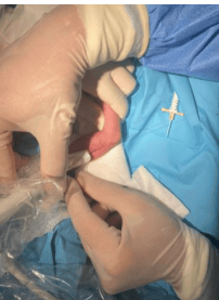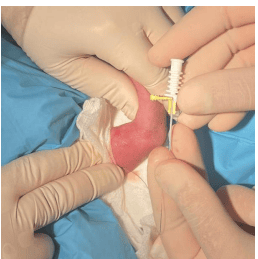 Mediante estas comprobaciones podemos confirmar el correcto desarrollo de la técnica de canalización para, posteriormente, proceder a la dilatación del punto de inserción y su trayecto, mediante la inserción del microintroductor con cánula pelable a través de la guía, en el interior de la luz del vaso con la máxima seguridad.