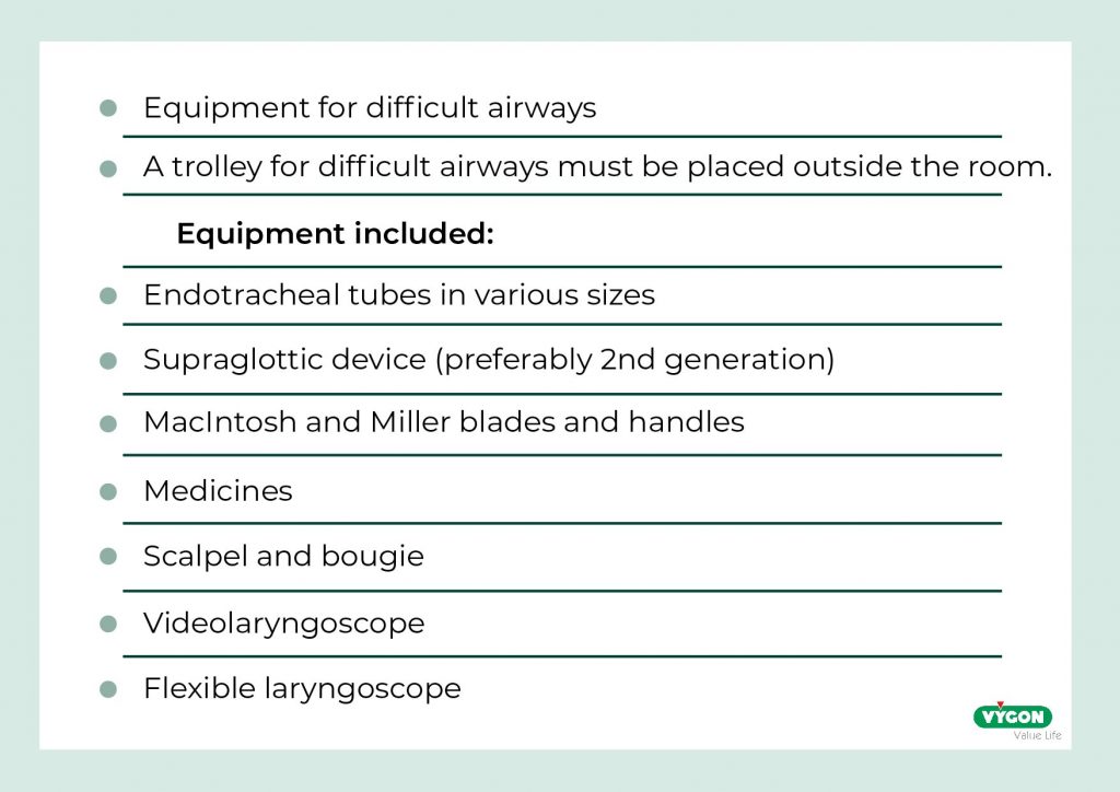 Before entering the patient’s room, the intubation team must discuss and plan the steps to be taken, and check that all the necessary equipment is available: