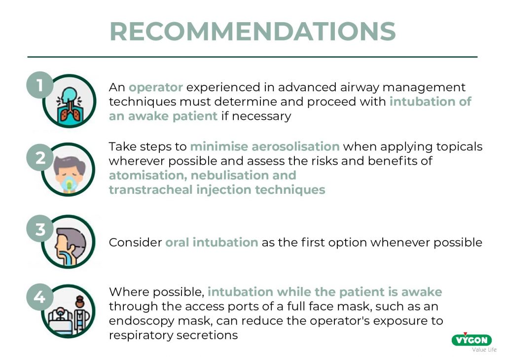 For patients whose airways are difficult to access, management can take longer. This means more healthcare professionals and more aerosol-generating procedures. To minimize the number of professionals in the patient’s room, the intubation team must be made up of highly qualified and strictly necessary personnel.