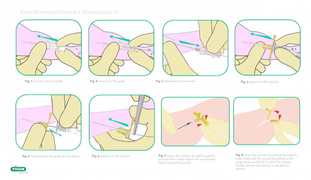 • Inserting the catheter into the introducer is delicate because the diameters are very similar (the proximal end of the needle is not widened).